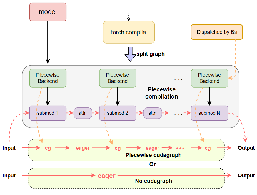 - Dispatch between full and piecewise cudagraph at runtime depending on batch composition.